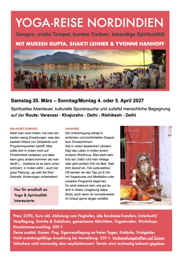 - ernsthaft an ganzheitlichem Yoga interessiert bist mit Offenheit für Mantras, Meditation, Bhakti und Jnana-Yoga.
