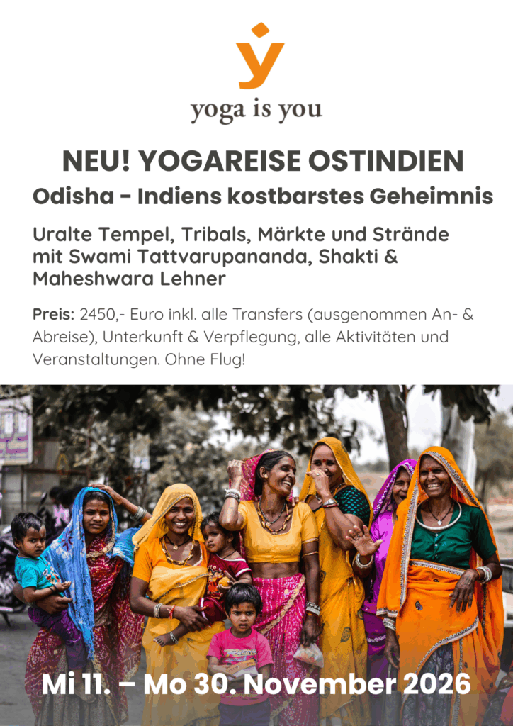 - ernsthaft an ganzheitlichem Yoga interessiert bist mit Offenheit für Mantras, Meditation, Bhakti und Jnana-Yoga.